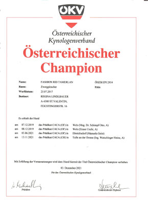 13.11.2021 CACIB CRUFTS TULLN - Richter: Ing. Heinz Watschinger (A) - CH Kl. - V1, CACA ---> nun ist Mark Österreichischer Champion!!!
