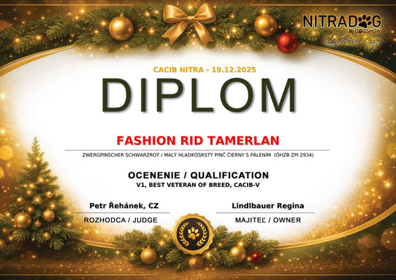18.12.2025 Christmas Cup Nitra 2025 CACIB I - Richter: Denk Csaba (HU) - V1, BOV, CACIB Veteran