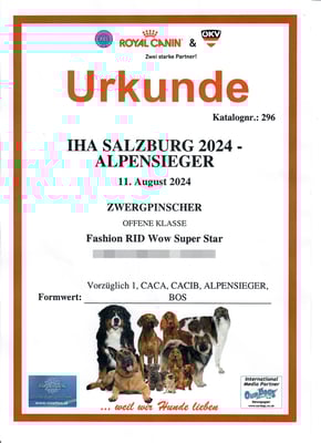 11.08.2024 IHA Salzburg - Richter: Günther Ehrenreich (AT) - V1, CACA, CACIB, BOS ---> Titel: Salzburg Alpensieger!!!