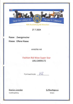 Vary war auf dieser Show total in die Richterin verliebt, sie wollte immer zur Richterin und kuscheln. Sogar die Richterin sagte, solch ein tolles Wesen kennt sie nicht. Sie kennt Pinscher die beißen, aber so ein mega Wesen ist extrem toll. Leider ist sie nicht gut gelaufen, wollte immer zur Richterin, sie hat sie echt geliebt und die Richterin ist Profi, wusste ein TOP Hund, aber somit bekam sie nur das Res. CACIB, alles klar und OK, das Wesen ist uns absolut wichtiger <3 <3 War eine tolle Show <3 <3 Schöneres kann man nicht von einer Richterin hören <3