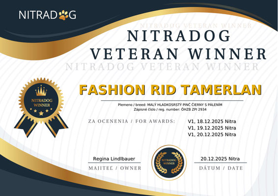 Fashion RID Tamerlan *Mark* - Veteranen Klasse - Vet. CH Slowakia, Nitradog Veteran Winner, Nitradog Veteran Super Winner