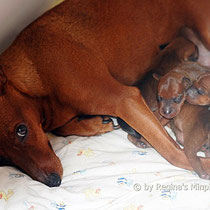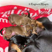 A-Wurf / Hündin Akliah*Puca* schwarz - rot / Hündin Amina *Mini* rot / 06.10.2010 Kimberly GDS X Slavjan Cerutti